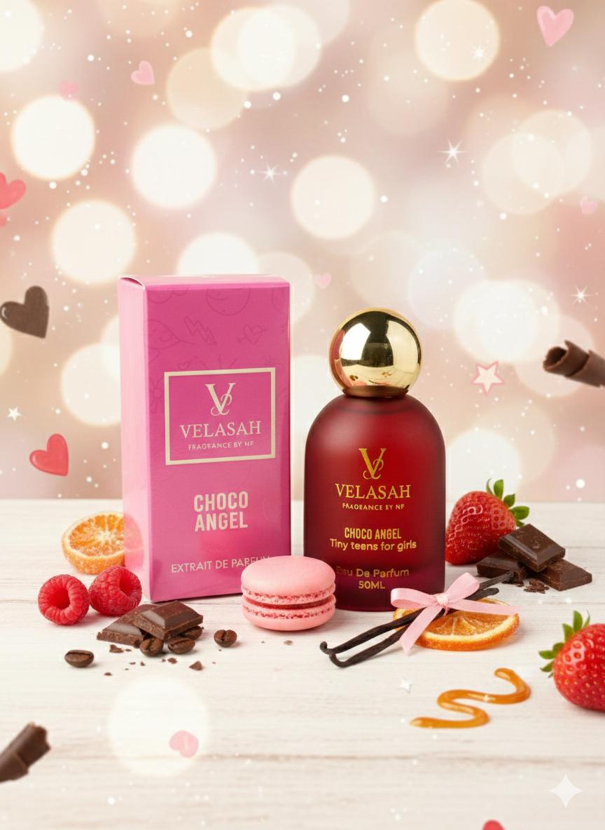 Choco Angel is a sweet and playful fragrance specially crafted for teen girls who love confidence, charm, and a touch of delicious warmth. The scent opens with a bright splash of orange zest and soft berry notes, creating a cheerful and energetic first impression.